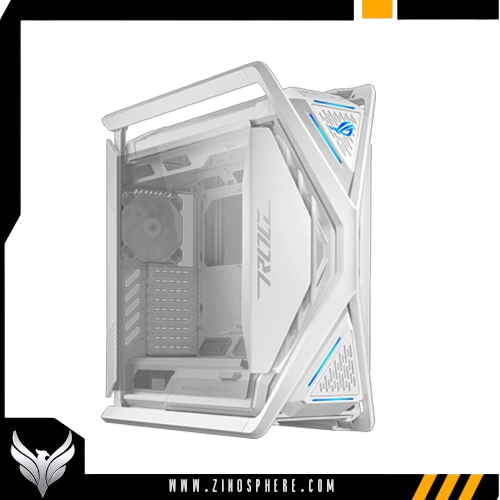 ROG Hyperion GR701 E-ATX computer case, 420 mm dual radiator support, four 140 mm fans, metal GPU holder, component storage, ARGB fan hub, 60W fast charging.