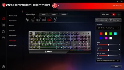 SUPPORTED BY DRAGON CENTER Adjust detailed settings to personalize your specific style in the latest Dragon Center software.